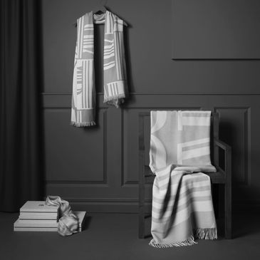 The products are meticulously crafted scarves-both silk and woolen- and elegant throws made from a rich blend of fine merino wool and cashmere. These pieces exude sophistication, balancing comfort with the duo’s impeccable design sensibilities. The patterns that adorn each item reflect the designers’ signature graphic style, now expanded into a collection-wide motif, making each piece instantly recognizable.